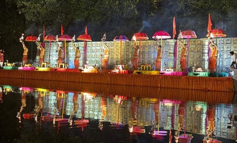 जांबावली – श्री रामनाथ दामोदर संस्थानतर्फे १११ व्या पिंडीकोत्सवा निमीत्त बुधवार २५ मार्च २०२६ रोजी आयोजित कुशावती नदी आरती सोहळ्यास गोवा तसेच कर्नाटक, महाराष्ट्र राज्यातून आलेल्या भक्तांची भव्य  उपस्थिती लाभली. “देवाचो पाणटो” येथे  उभारलेल्या भव्य व कलात्मक व्यासपिठावर खास हरिद्वार येथून आलेल्या अर्चकांनी कुशावती आरतीचा अविष्कार सादर केला.