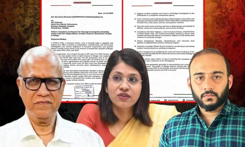 गणेशोत्सव पॅंडल स्कॅंडलची मडगांवचो आवाज तर्फे दक्षिण गोवा जिल्हाधिकारी कार्यालयात औपचारिक तक्रार दाखल करण्यात आली आहे. ही तक्रार मडगावच्या आमदार निधी योजनेअंतर्गत ७५ लाख रुपयांच्या गणेशोत्सव मंडप घोटाळ्याबाबत असून, सार्वजनिक निधीचा राजकीय वा वैयक्तिक फायद्यासाठी गैरवापर केल्याचे तक्रारीत म्हटले आहे. धार्मिक सणांच्या नावाखाली करदात्यांच्या पैशांचा वैयक्तीक फायद्यासाठी वापर करणे हे अनैतिक असून गणेशोत्सवाच्या पवित्रतेचा अपमान आहे, असे प्रभव नायक यांनी सांगितले.