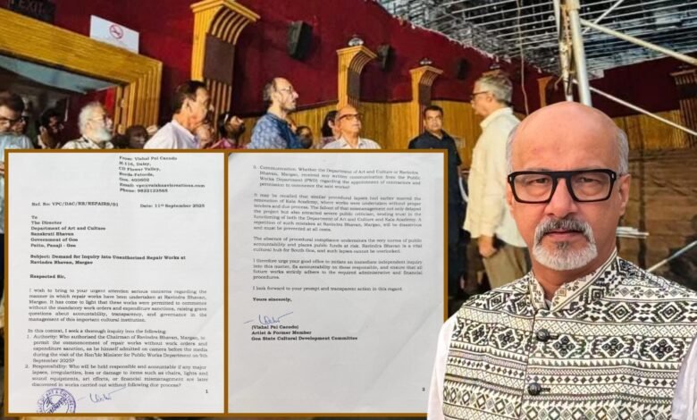 मडगाव : मुंबई उच्च न्यायालयाच्या गोवा खंडपिठाने दिनांक ८ सप्टेंबर २०२५ रोजी कला अकादमीतील कामांमध्ये गंभीर त्रुटी झाल्याचे स्पष्ट करत, निविदा प्रक्रियेची पायमल्ली केल्याबद्दल सरकारला जबाबदार धरणारा अंतरिम आदेश दिल्यानंतर, राज्य सांस्कृतिक विकास समितीचे माजी सदस्य व कलाकार विशाल पै काकोडे यांनी मडगाव येथील रवींद्र भवनात सुरू असलेल्या बेकायदा दुरुस्ती कामांवर स्वायत्त चौकशीची मागणी केली आहे.